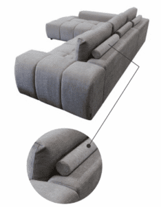 Dekoratiivpadjad kuuluvad komplekti. Seljapatjade taga silindrikujulised tugipadjad: