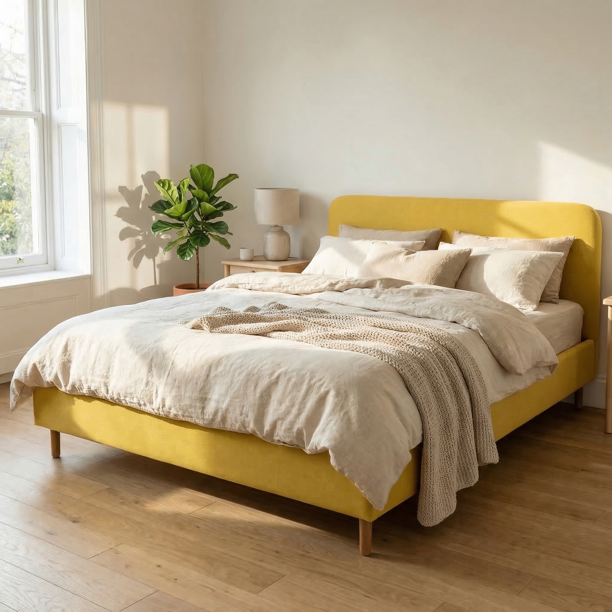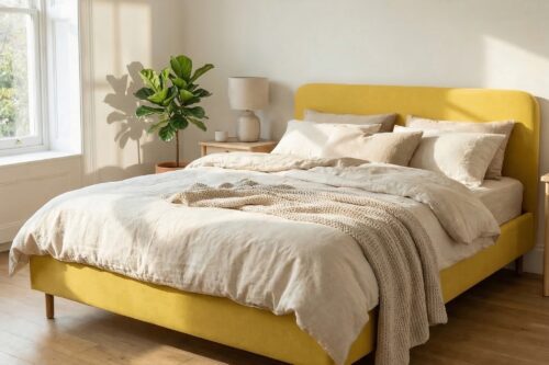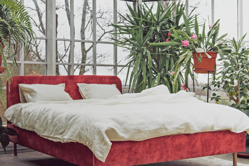 The Megan bed is designed for those who want a standout bed with striking design for their bedroom. Both the headboard and bed frame are soft and padded, making it viewable from all angles. You can place the bed even in the center of the room!