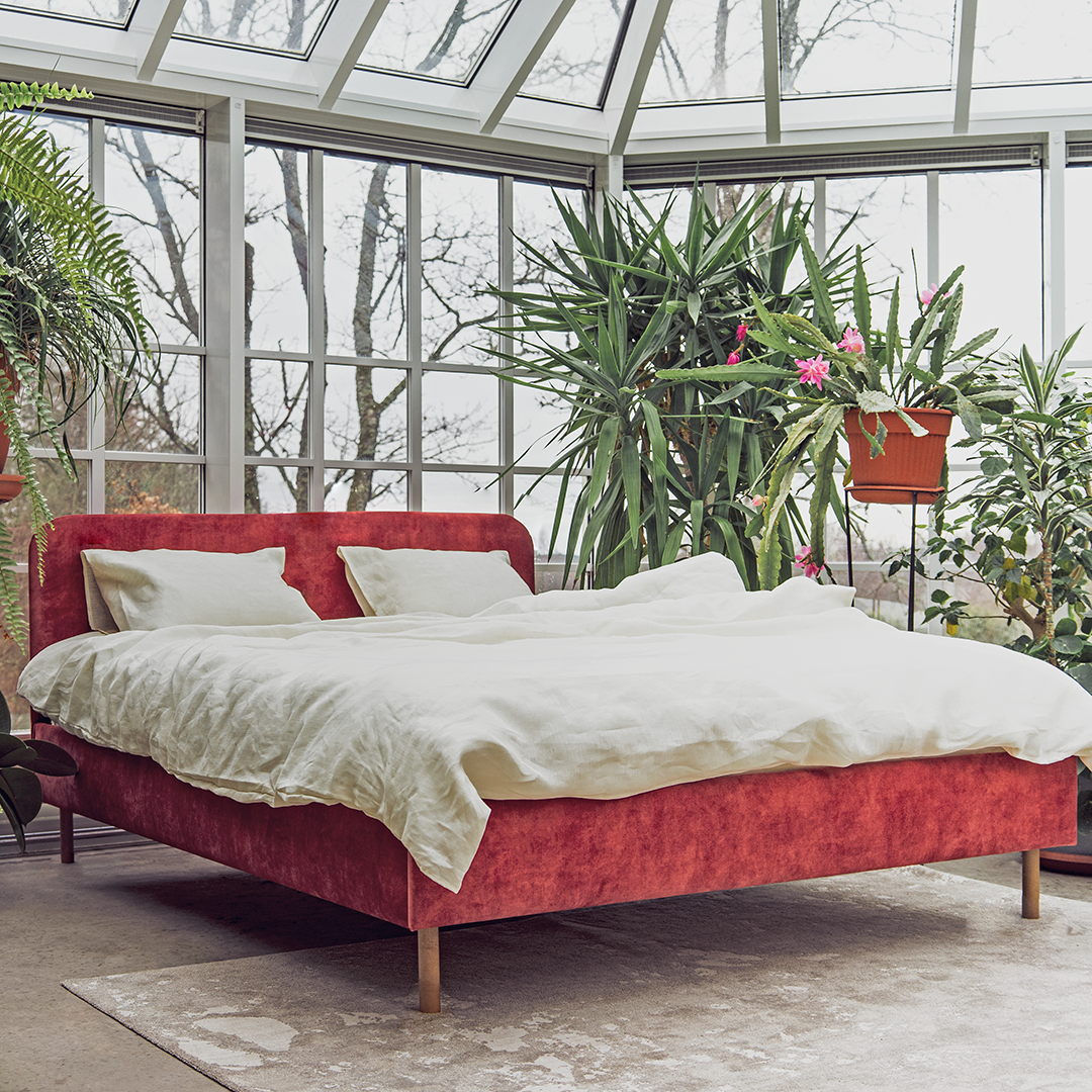 The Megan bed’s light, airy shape is accentuated by its high 15 cm legs, allowing easy access for a robot vacuum underneath. You can choose from six different widths, starting from 80 cm up to a super-wide 180 cm. There’s no doubt that everyone will find the perfect size. The bed comes with our Royal Hard mattress.